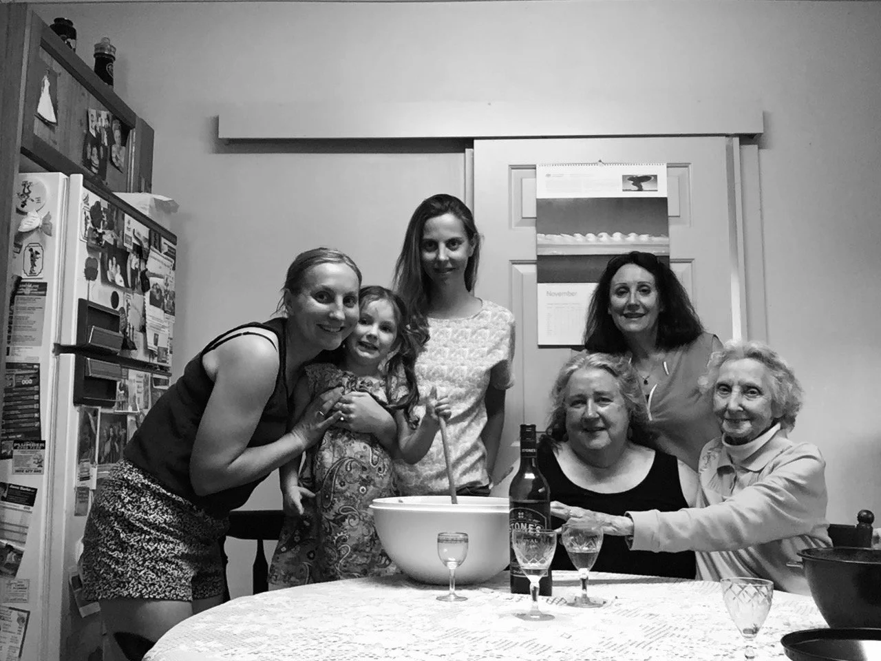 A few years later, sadly my younger brother Jimi died, and then my mum Faye was diagnosed with and died quickly from pancreatic cancer. These deaths shook my grandma to her core. To lose her child and grandchild was unfathomable and cruel. It even challenged her steady Christian faith, symbolically marked by the fact that the day my mum died, she removed her crucifix and never put it back on.The following Christmas after my mum’s passing, my sister and I were welcomed into the tradition in her place. I brought my two-year-old rambunctious daughter Odette, who of course brought spirited, lively energy to the day. We now had two more people to honour and mourn and stir into the pudding. It seemed a dose of tears was always the missing ingredient.